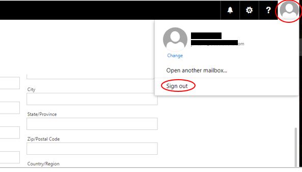 - Sign out of Outlook (click your account icon on the right, then select Sign Out from the drop-down)